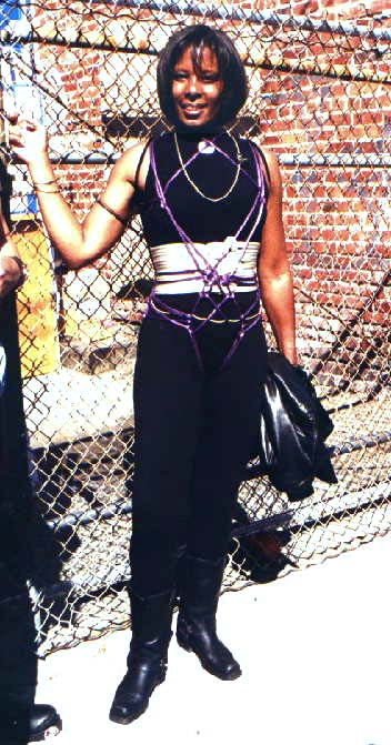 STACY - is Ms. NLA Leather (National Leather Association) since 1996 because there was no contest last year. But come October the Board of Directors will select it’s first Mr. & Ms. Ambassador of Leather - and Stacy’s name is entered. She has traveled tirelessly world-wide and community-wide as just that - Ambassador of Leather - and not just preaching to the choir either. Recently she appeared at the NOW Convention and Jessie Jackson’s Rainboy Education Converence to ‘represent’. And when we finally get here hook’d up with Dennis Rodman she’d love to be his phychologist. Stacy deserves very careful consideration for this honor.