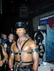 Meanwhile our neighbors to the North (Canada) were holding their Mr. Leatherman Toronto contest. The winner of that contest is Bill Dearsley. He will compete at IML 2002. Frank Nowicki emceed that event.