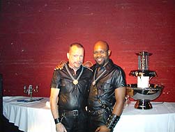 ![]() Robert Napolitano,runner up(L) David Oravez, New York Mr. Eagle Leather 2002 |