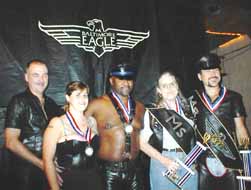 New York is preparing for the fall leather events. Mr. NY Eagle Leather contest and 33rd Anniversary is approaching. The applications are up on their website. Mr. NY Eagle (Mike Tully) will be stepping aside October 4. Jill Carter, IMSL 96, Walt Weiss, Mr. LURE 2002-03, Larry Barat, Mr. DC Eagle 2003, and Herb Kaylor, Mr. DC Eagle will make the selection of who will be Mr. NY Eagle 2004. The ever so important tally master duties will be handled by Michael Marino, MAL 2001. Sign Interpreter will be Susan Weinstein.