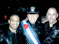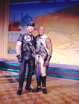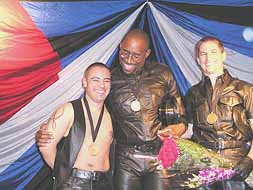 ![]() Michael Dumont (L), 1st runner up Troy Anicete, (R) Mr SF Leather 2003 |