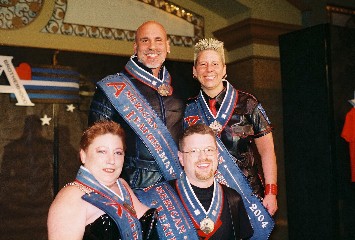 -->ABW Leather Family 2004 (L-R) Robert Napolitano, Storm--(Kneeling) Terry Brown, Beth Abate |