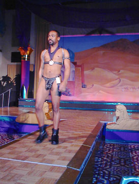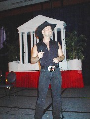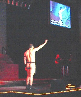 American Brotherhood premiered at a new location this year. The contest was held in Virginia, across the Potomac from Washington, DC. The Sheraton Hotel was the site. A very nice hotel to say the least. Although one wonders how prepared the hotel staff was for what they were about to see and hear. If they were not prepared, we can only hope that they will be by next year. It was announced the hotel will be the site of ABW 2005. It might be advisable for the hotel management to hold a sensitivity training course for their employees before next years event. A few attendee's expressed disappointment that it was not held in the District of Columbia. However there was a shuttle van to get people back and forth into the city and to other bars and businesses.