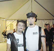 ![]() Canadian LeatherMen Douglas Conners (L) Ottawa Paul Ciantar (R) Toronto | ![]() Cristo Webb MAL Bootblack '03 photo by Dick Johnson |
