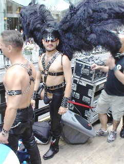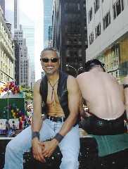 The NY Leather community turned out in full force. The New York Eagle had a float loaded with hot leathermen and women. Their float gave music, and the music had the thousands along the parade route rocking. Mr. Eagle NYC 2004, (Brian Kent) had just released a new single and everyone had it memorized word for word, by the time the float reached the end of the parade.
