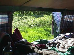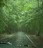 That was Starday night. Now it’s Sunday afternoon after our champaign brunch. Good stuff. Good conversation with our fine host who takes off to spend the day with his lover. We end up resting a good porting of the day. We had kept a tight schedule since even before leaving home two weeks ago. In the last afternoon we packed up and headed out to the country again. Our plan is to camp out and visit moms again in the morning. We find a State Campground this time - and fall asleep early out in an open area because of the fear of more storms coming in which may fall trees. But the night ws quiet - private. In the morning on our walk to the showers we discovered the damage from two nights before - during that noisy storm we heard in Detroit, the wind had broken a whole bunch of trees down and splitting ohers off at the top. Amazing, really.